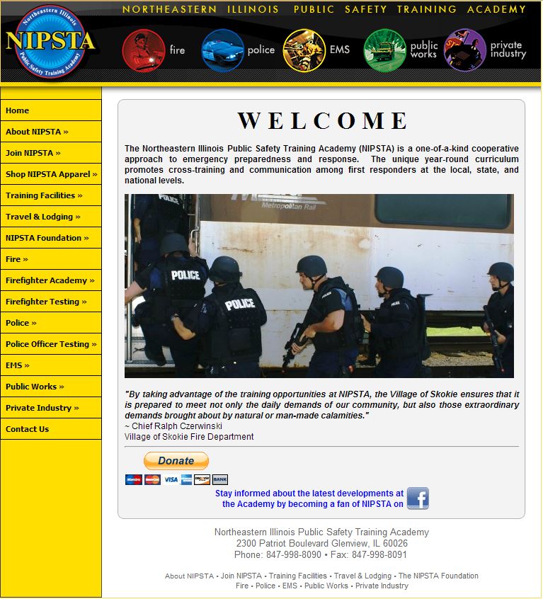 The Northeastern Illinois Public Safety Training Academy (NIPSTA) is a one-of-a-kind cooperative approach to emergency preparedness and response. The unique year-round curriculum promotes cross-training and communication among first responders at the local, state, and national levels. Etchasoft has been the Web development partner for NIPSTA since its inception.