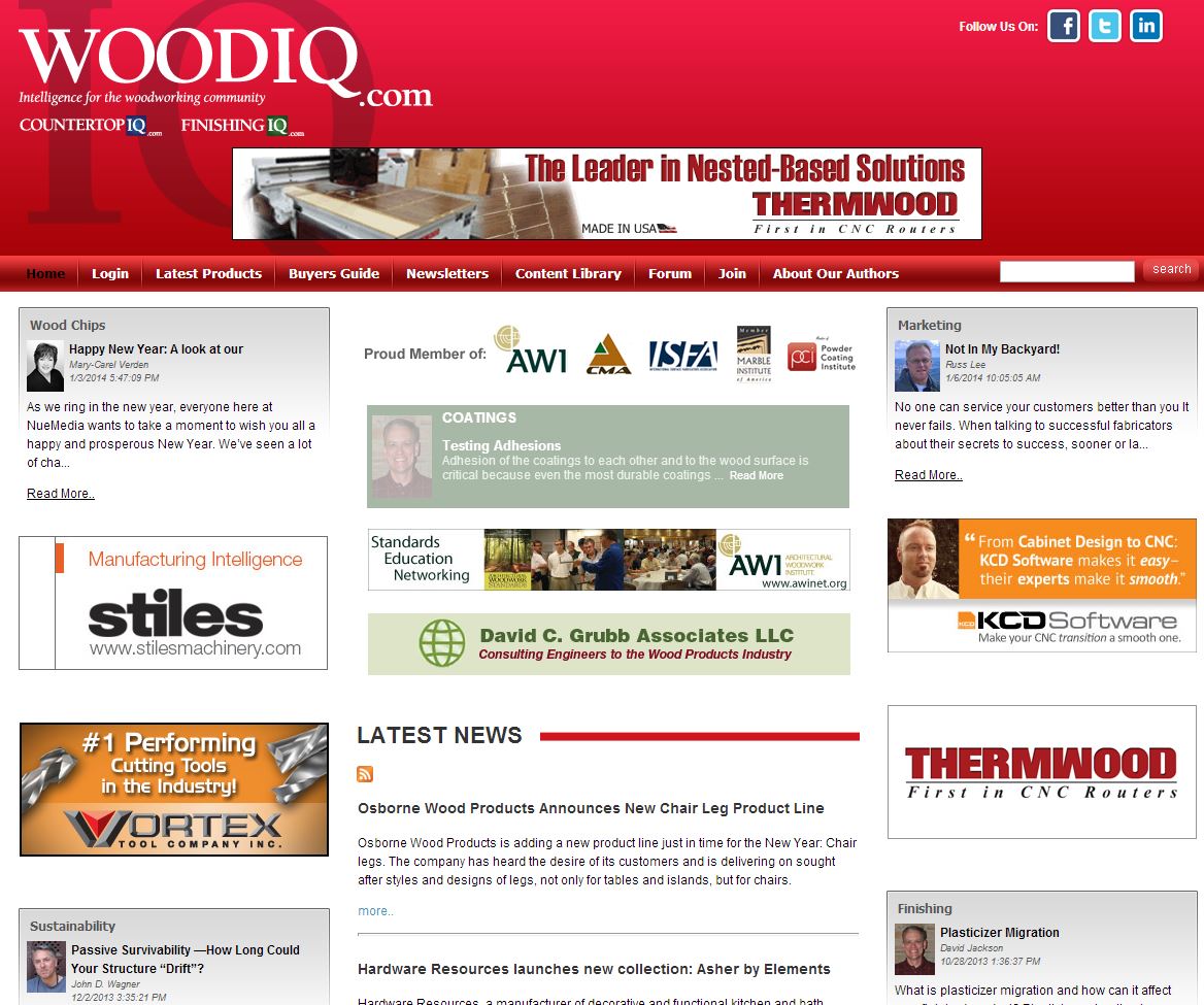 WoodIQ was moving from a traditional print publication to an exclusively online magazine. All functions for publishing, advertising, data and content had to be migrated to a new online platform. Etchasoft was chosen as the development partner and has supported the new site since its launch. The site boasts and extensive article and blog publishing system, a custom built buyers guide promoting thousands of industry vendors, workflow to manage publishing, banner advertising management and numerous other features to benefit readers and industry advertisers.